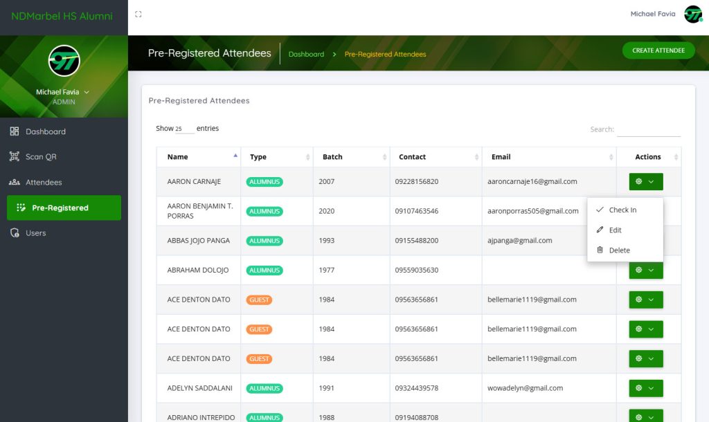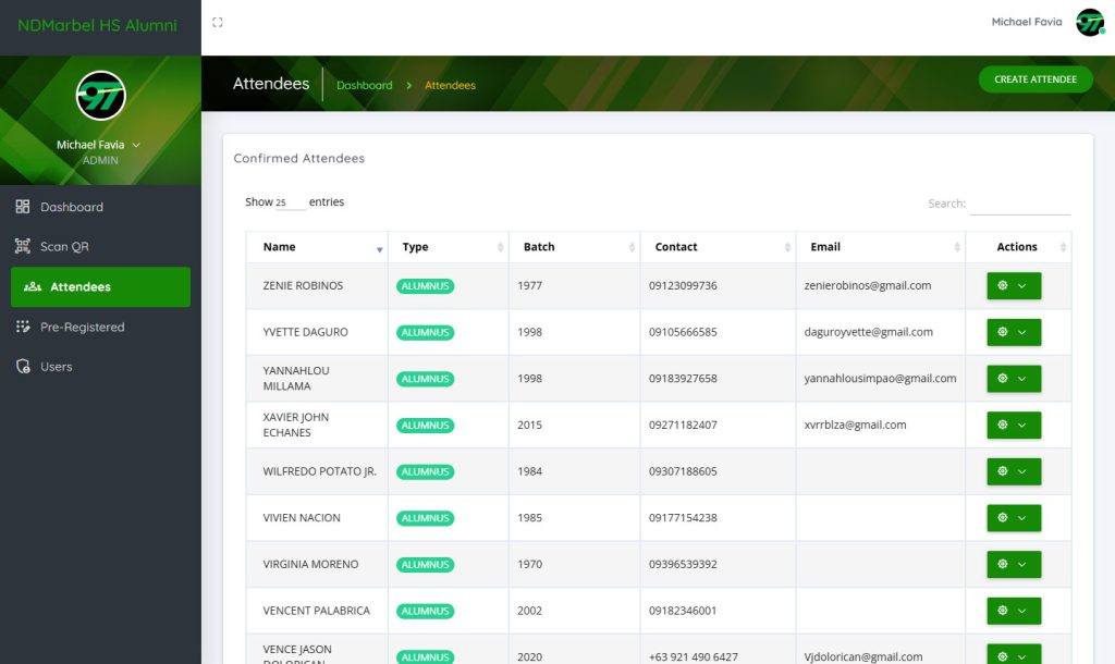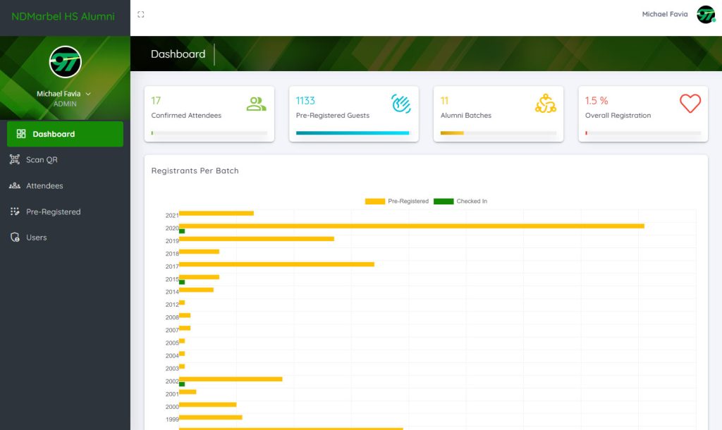 Annually, Notre Dame of Marbel University High School and Notre Dame of Marbel for Girls High School co-host a large-scale reunion. As a member of the organizing batch (Batch ’97), I recognized the logistical challenge of managing approximately 64 batches (from 1957–2021) and tracking each attendee and their guests using manual, paper-based methods.