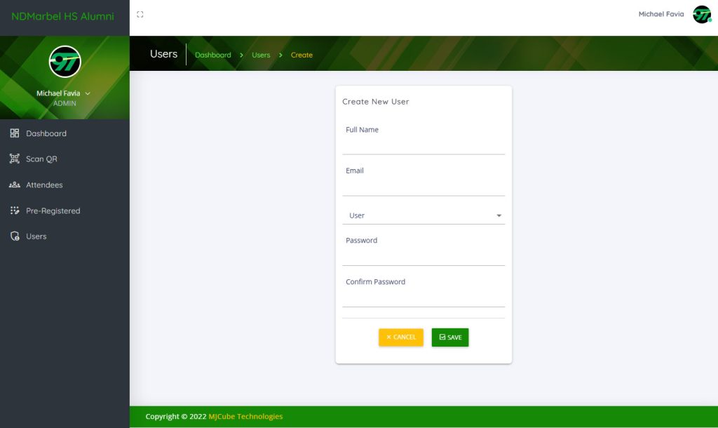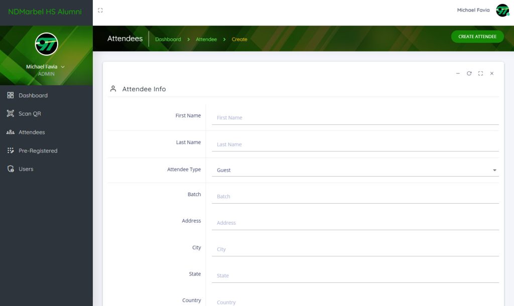 Full Create, Read, Update, and Delete functionality for managing both attendee records and system users, ensuring effortless data administration.